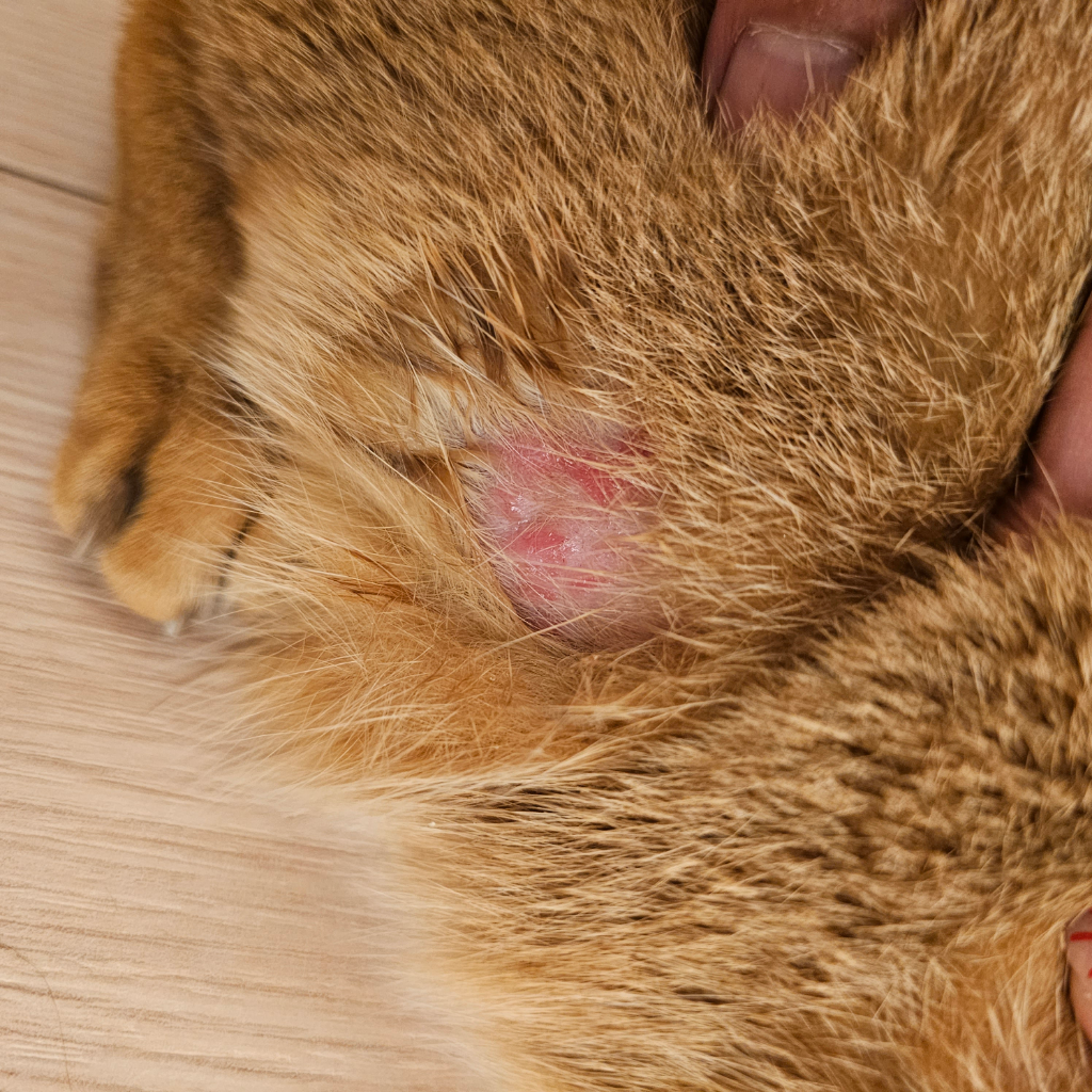 이유야 여러가지겠지만, 오버 그루밍이나. 그 부분이 매우 가렵거나 심한 스트레스를 받았거나 등 다양한 요인이 있습니다.