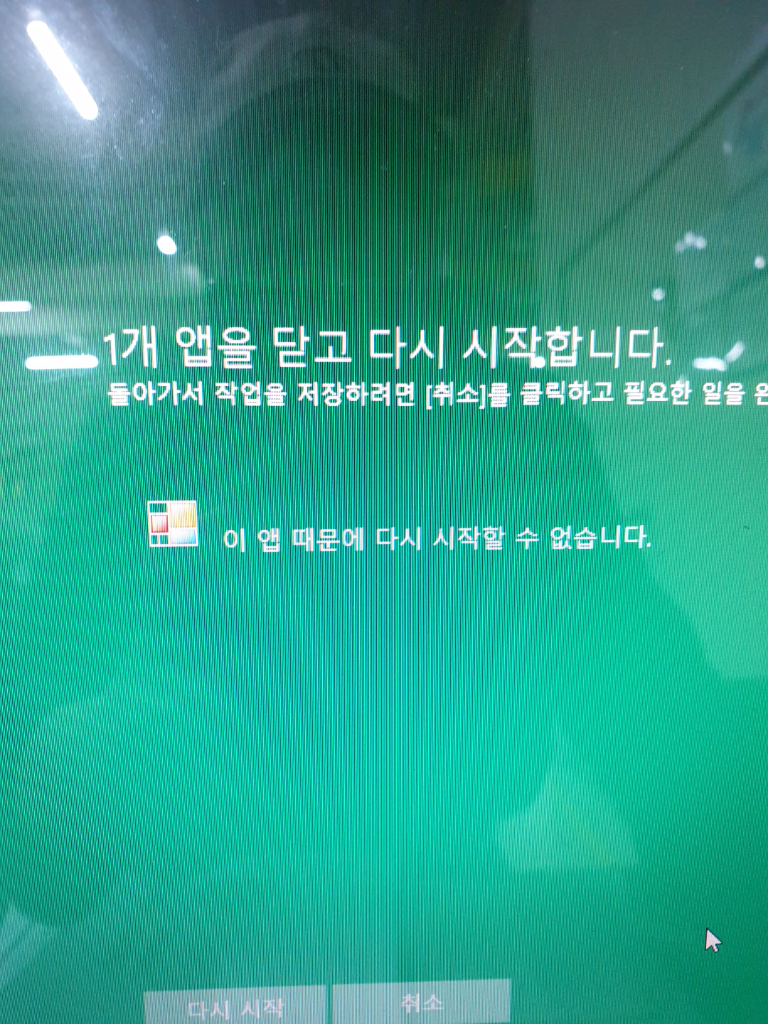 PC를 재부팅 하려고 하면 아래의 앱 문제로 다시 시작이 안된다고 합니다