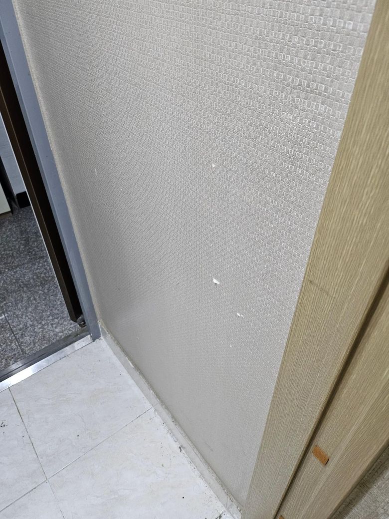 그리고 신발장 벽지 살짝 훼손 된 곳 있는데 사용 수익 하면서 발생한 자연마모로 판단되는데 확인 부탁드립니다.(4번째 사진)