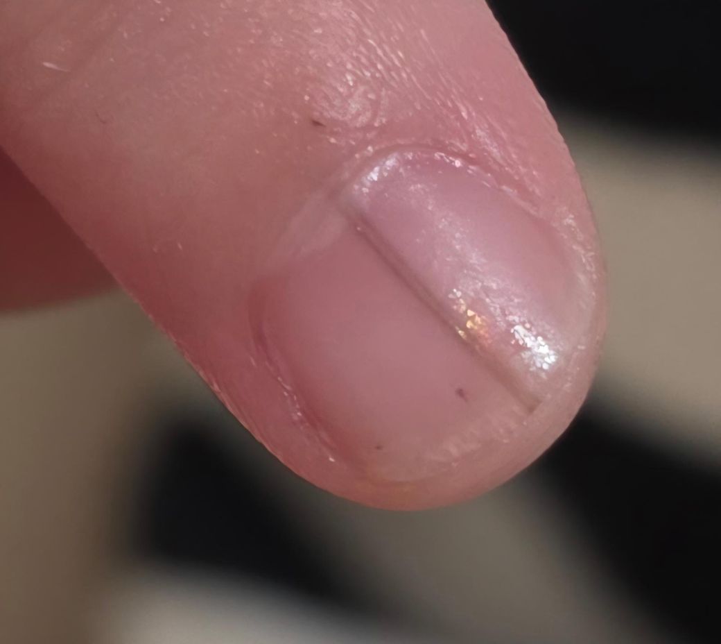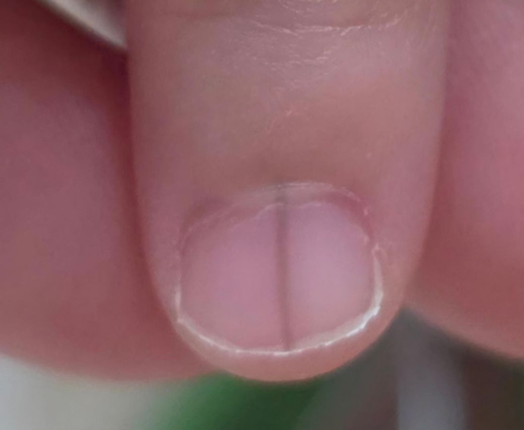 한 줄이 두 갈래로 보이는 현상 역시 손톱 성장 과정에서 나타날 수 있으며, 두께·색 변화가 없고 새 선이 추가되지 않는다면 경과 관찰이 합리적입니다. 다만 선의 색이 점점 짙어지거나, 폭이 넓어지거나, 손톱 주변 피부까지 색이 번지거나, 여러 손톱에 동시에 나타나는 경우에는 소아과 또는 피부과 진료가 필요합니다. 현재 정보만으로는 악성 질환을 강하게 의심할 소견은 없어 보입니다.
