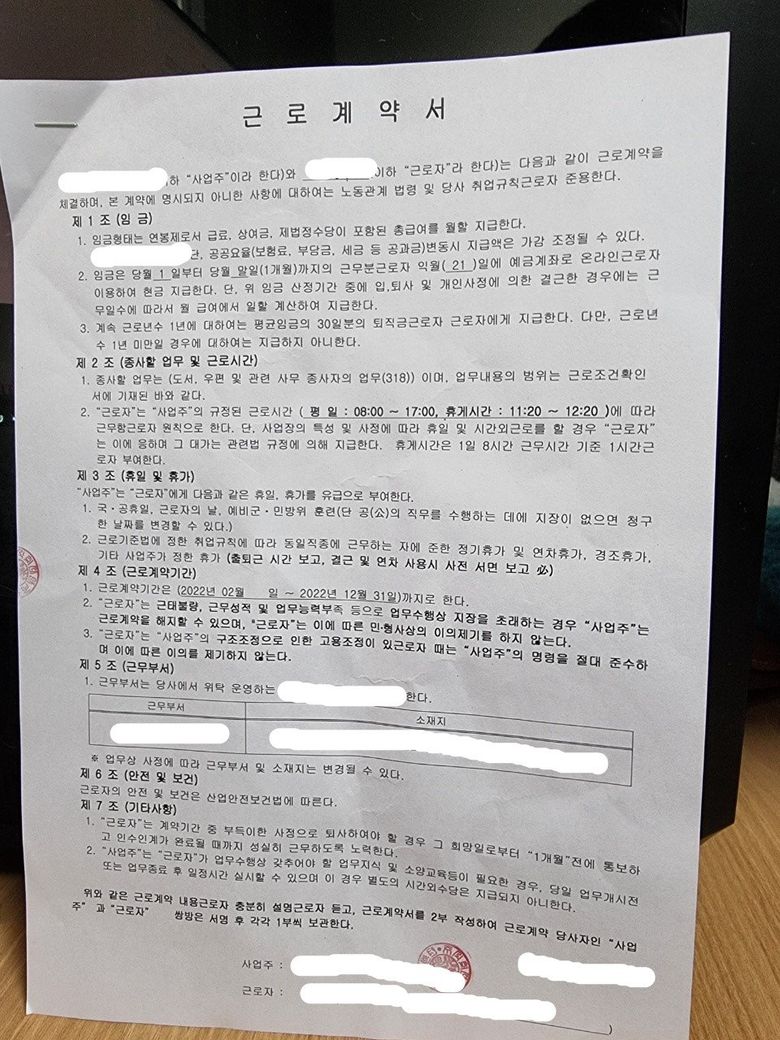 근로계약서 독소조항 확인좀 부탁드리겠습니다.