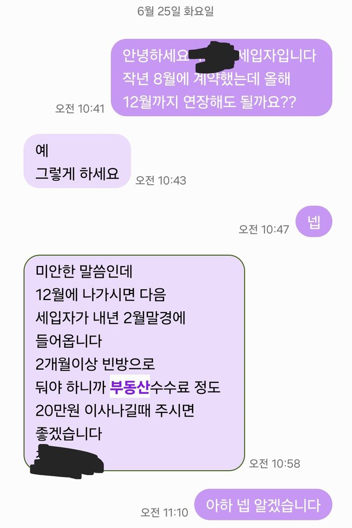 현재 대학가 원룸을 작년 8월에 1년단위로 계약해서 원래 올해 8월에 계약이 만료되는 건데 올해 6월쯤에 12월까지 연장요청을 드렸습니다