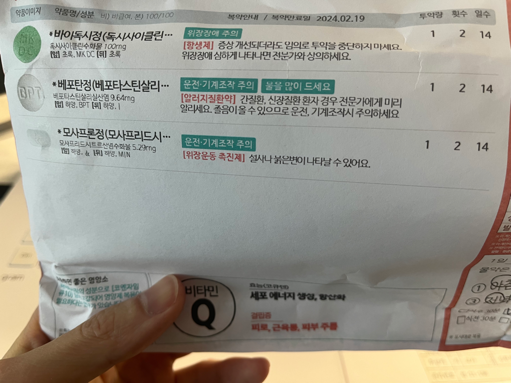 마그네슘, 아연, 우유, 미네랄 등과 독시사이클린 항생제는 2시간 이격을 두고 먹어야함을 알았습니다.