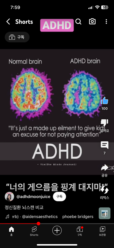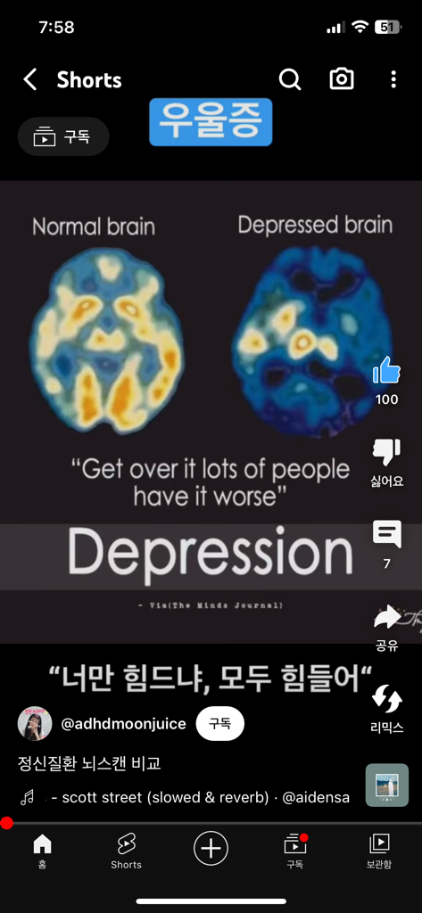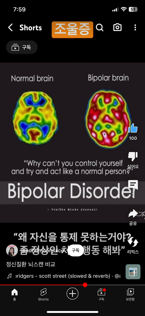 정상뇌와 정신질환을 가진 뇌를 비교한 영상인데