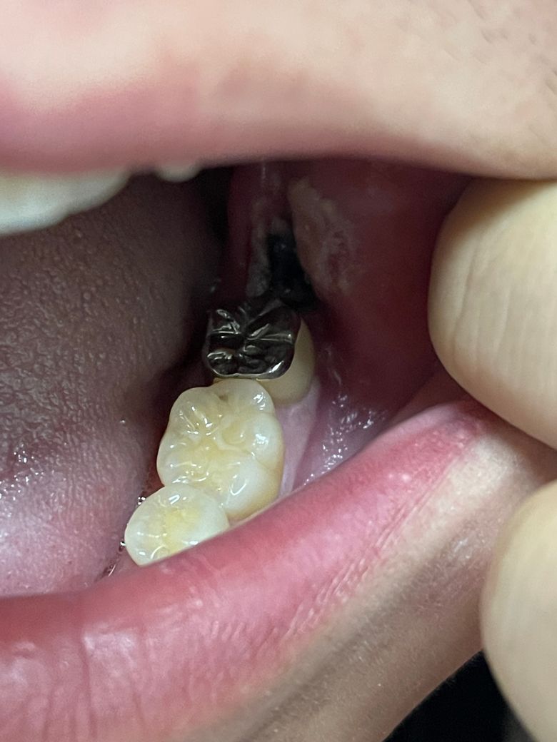 사랑니 발치 4일차인데 뿌리가 안쪽 ㄱ자로 휘어진 기형인 사랑니를 발치했습니다.