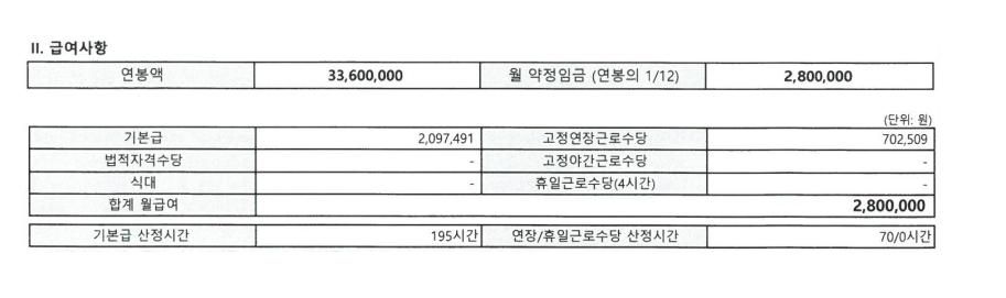 기본급 195시간, 고정연장 70시간인데