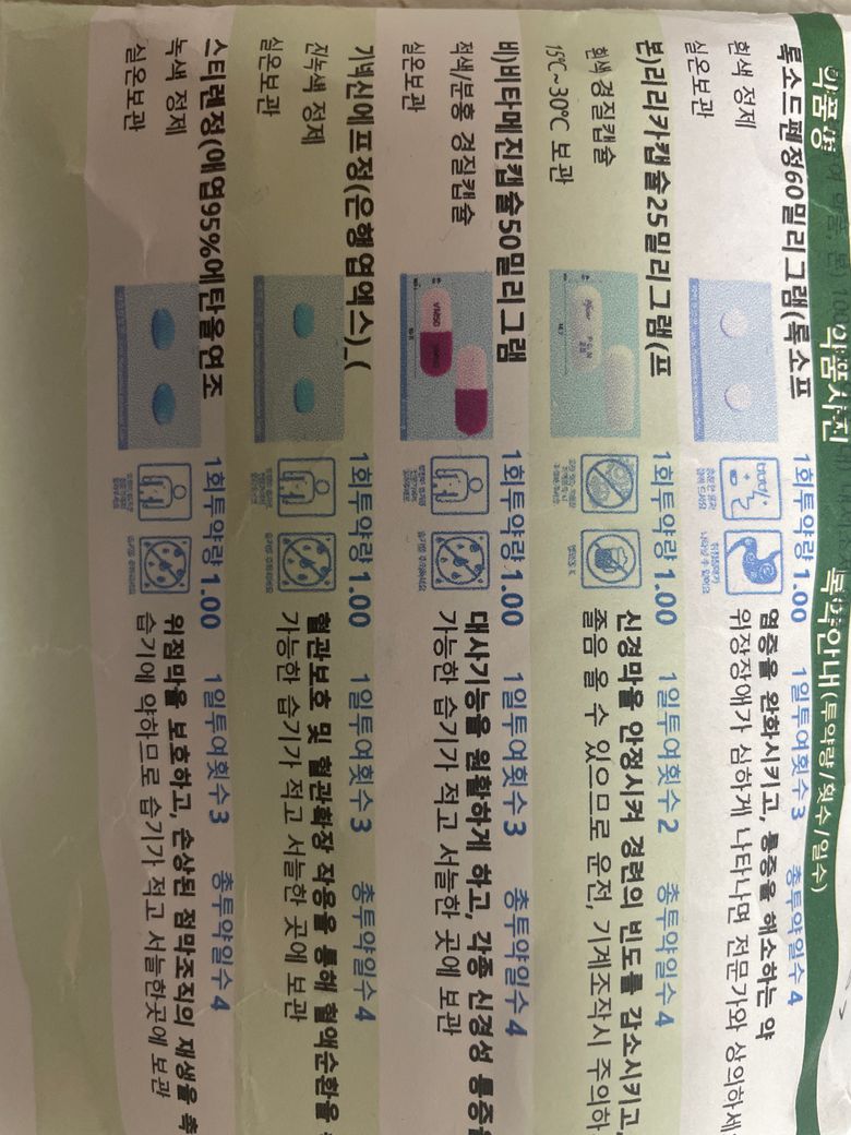 제가 손발저림 때문에 병원진료를 계속 보고 있었는데 처음에는 사진속 약들을 먹다가 손이랑 혀 뻣뻣함이 심해서 사진속 약은 안먹고 리보트릴 0.5정을 아침저녁으로만 먹는데 지금 손이 너무 저려서 사진속 약들과 리보트릴을 같이 먹어도 될까요?