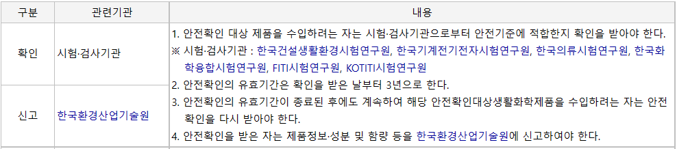 *안전확인대상생활화학제품의 확인 및 신고 (시행령 제5조)