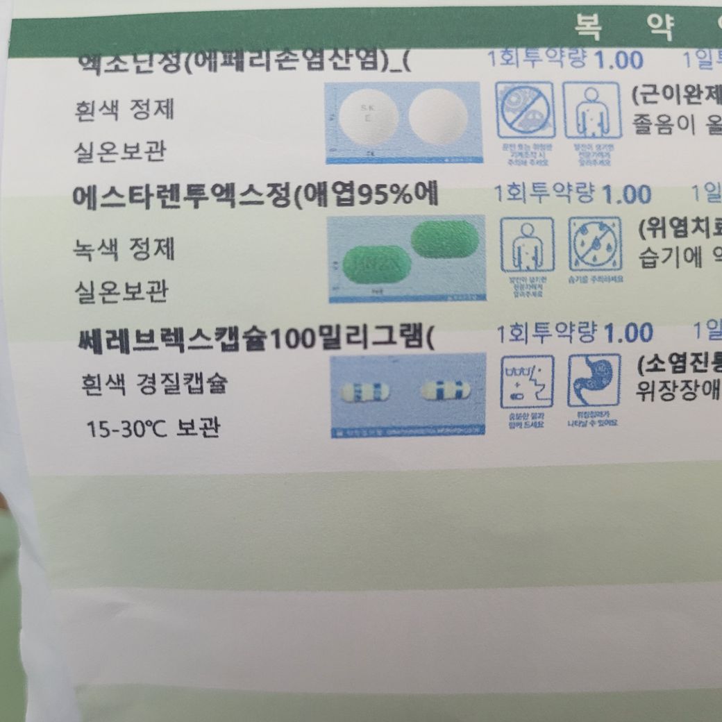 엑소닌정은 졸릴 수 있어서 빼고드세요.