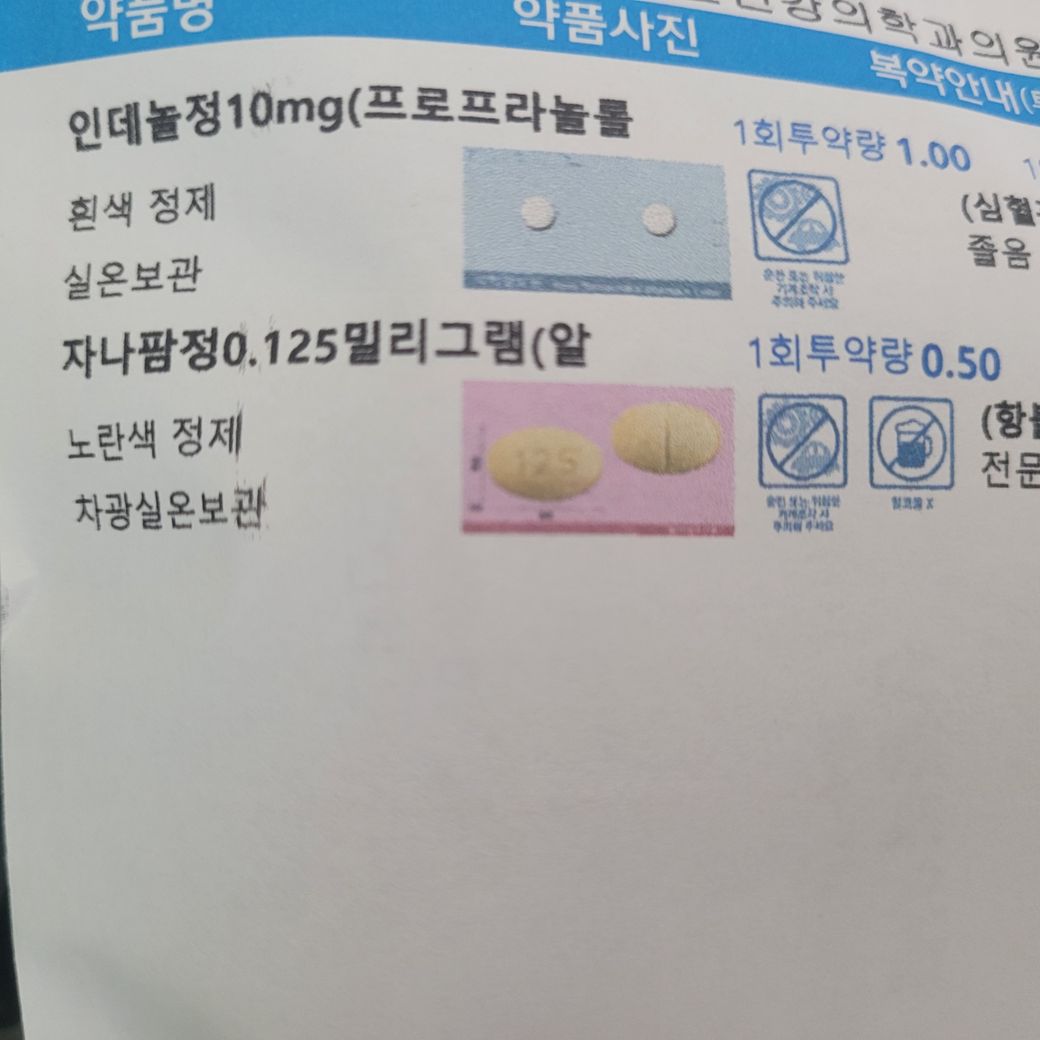 바리움정과 인데놀, 자나팜정은 같이 드시면 졸음이 심하게 올수있으니 자나팜을 빼고 드셔도됩니다.