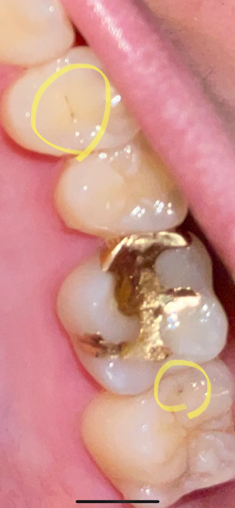 작은어금니의 경우 양치를 잘하면서 꾸준히 추척관리를 해주어야 할 것 같고 큰 어금니는 떼우는 치료를 하면 좋을 것 같으나 생각보다 안쪽으로 충치가 꽤 있을 수도 있는 상태입니다 단, 임상사진만 보고 단정지을 순 없고 추가적으로 방사선사진을 찍어 충치 진행정도가 어떤지 보고 결정할 필요가 있습니다