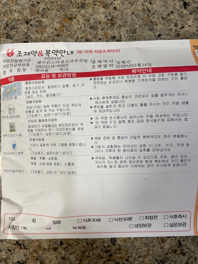 처방약 알리펜 시럽 3.5ml 좀전에 먹였는데