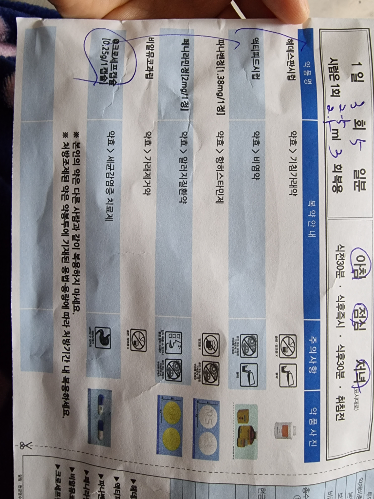 우선 처방약에 해열제가 없기 때문에 열이 생기면 해열제 추가로 복용 가능합니다.