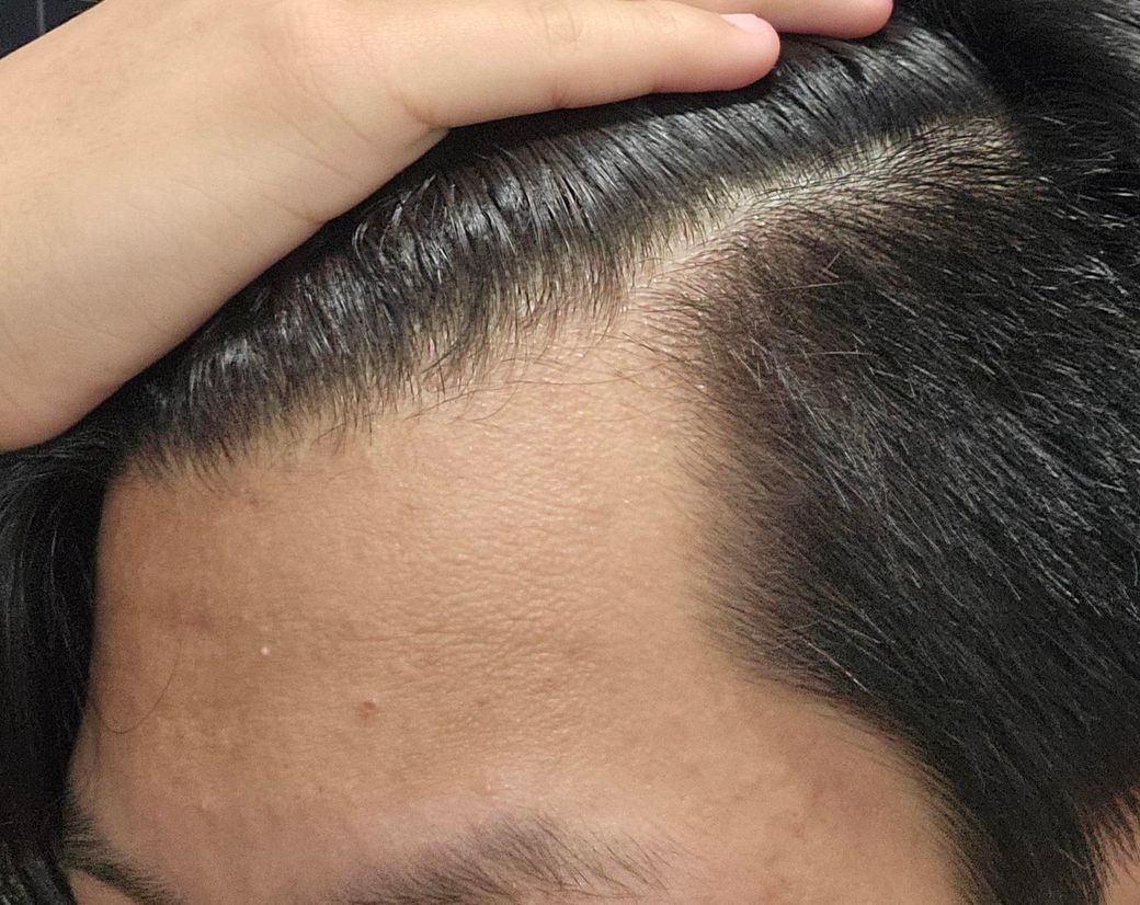 매번 말씀드리지만, 사진만으로 100퍼센트 확진은 못 하지만, 올려주신 사진만 기준으로 말씀드리면 원형탈모처럼 뚜렷한 동그란 탈모반은 잘 보이지 않고, 앞머리 양측 관자 부위가 비교적 깊게 들어가 보이며 측두부와 앞이마 라인 쪽으로 밀도가 약간 옅어 보입니다. 전체적으로는 남성형 탈모 초기에 보일 수 있는 형태와 일부 겹쳐 보입니다. 특히 남성형 탈모는 사춘기 이후에도 시작될 수 있고, 보통 앞머리선 후퇴나 관자 부위, 정수리 쪽부터 진행하는 양상이 흔합니다.