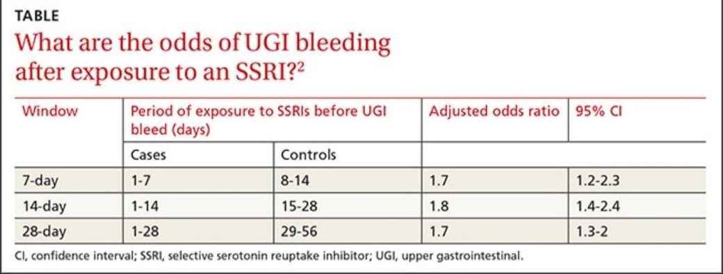 사용하는 SSRI가 대조군에 대비하여 얼마나 upper gastrointestinal bleeding의