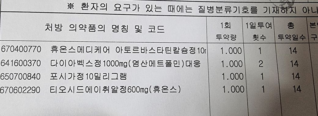 제가 고지혈증이라고 합니다. 그래서 병원에서 처방한 고지혈증 약을 먹고 있습니다. 양면 화살표 누르시면 확대됩니다.