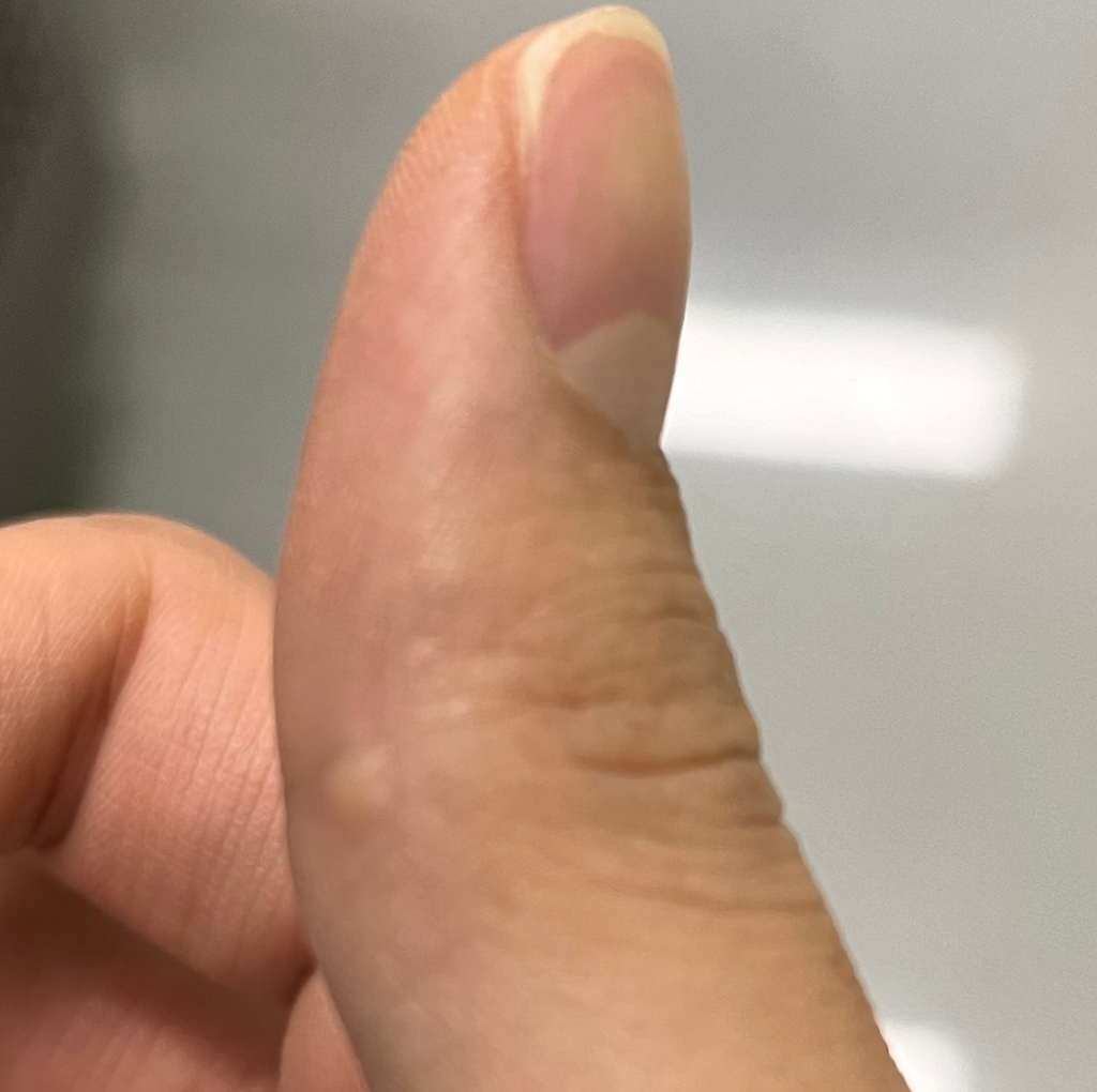 사진의 소견을 보았을 때에는 양성의 섬유성 조직으로 보이긴 합니다만, 유감스럽게도 사진만 보아서는 정확하게 파악하기 어렵습니다. 피부과에서 진료 및 검진을 한 번 받아보시는 것이 정확한 감별 진단을 위해서 필요할 것으로 사료됩니다.