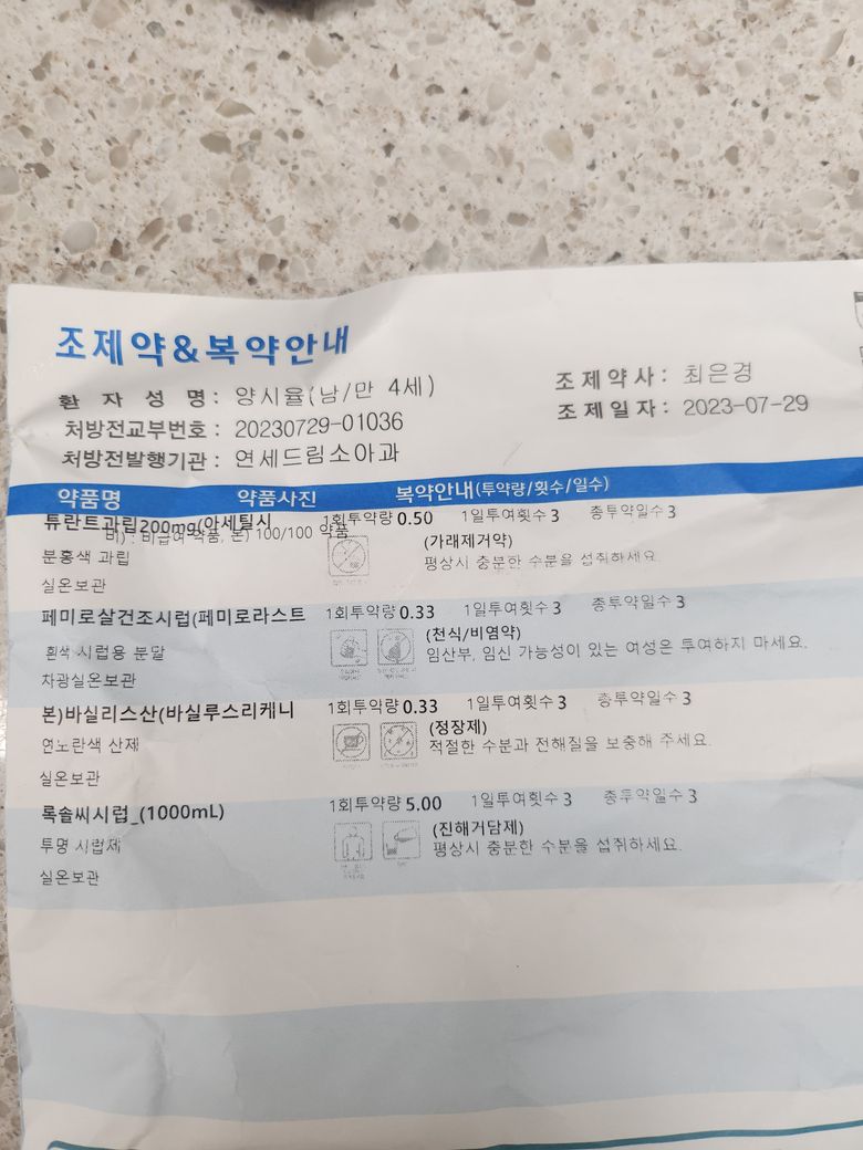 아이약을 잘못해서 이전약이랑 섞여먹였어요