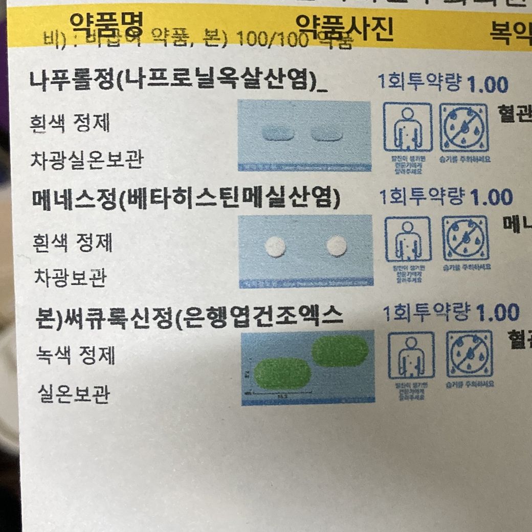 이명때문에 해당 혈액순환제 처방받아서 먹고 있는데 원래 기립성 저혈압이 좀 있습니다 그런데 이 약들 먹어도 되는건가요? 약 복용하면 조금 기운빠지고 두통이 생기는 거 같아요 안맞는다고 생각되면 복용을 멈추는게 나을까요?