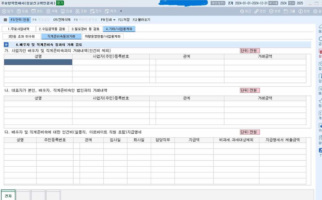 성실신고 주요항목명세서 자녀 사업소득 신고 한건 어디에 적어야하나요?