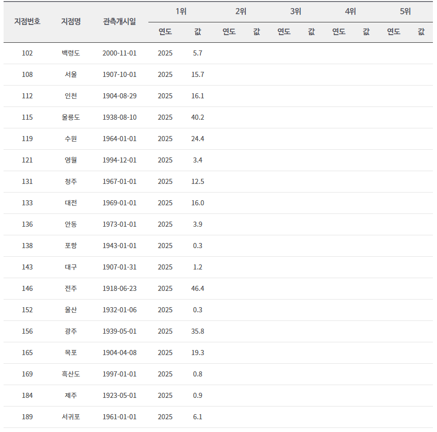 일단 2025년 기준으로는 가장 많이 눈이 쌓인 지역은 전주입니다. 다만 산골 지역이나 작은 시골 지역까지 더한다면 차이가 있겠지만 관측소가 있는 기준으로는 전주가 1위입니다.
