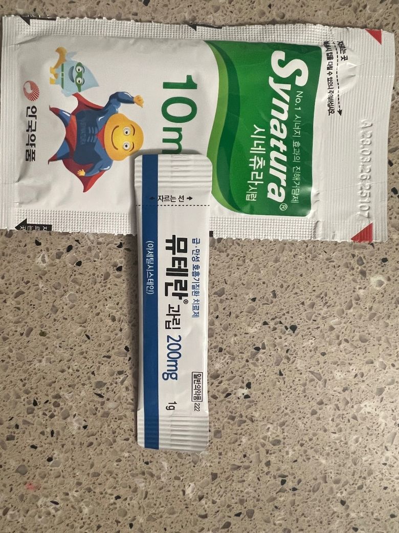 시네츄라 시럽과 뮤테란 과립은 함께 혼합하여 복용을 하셔도 괜찮습니다. 아이가 먹기 편한 방법으로 먹여주시면 됩니다