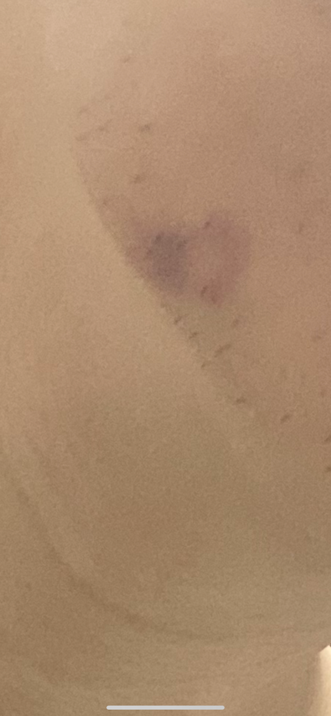 사진의 소견을 통해서 보았을 때에는 특별히 심각한 것은 아니며 일시적인 멍 증상일 가능성이 높아 보입니다. 우려스럽다면 피부과에서 정밀하게 검진을 받아보는 것이 도움이 될 수 있겠습니다.