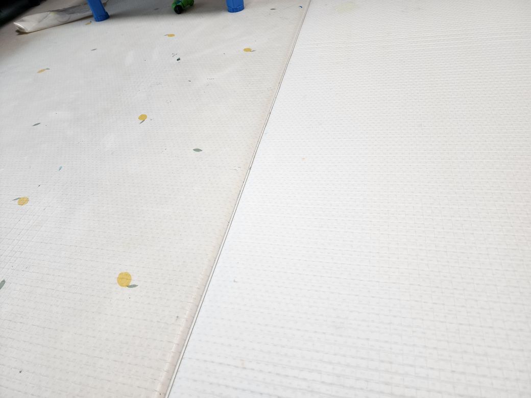 한쪽만 펼쳐서 쓰다보니 검게 변색?이 되는듯해서 닦아보려해도 잘 안되네요. 사진상 오른쪽은 반대쪽 매트로 뒤집어 놓은 것이고 왼쪽이 문제의 면.