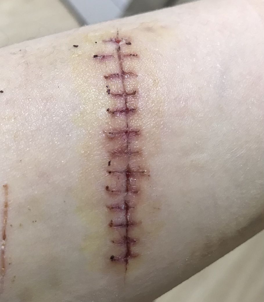 또한 흐르는 물로 샤워를 하시는것은 괜찮을것 같으며, 드래싱은 필요하지 않는 상태로 보이며, 후시딘 또는 마데카솔 같은 연고를 도포해 주신다면 상처치유에 더 좋을것 같습니다.