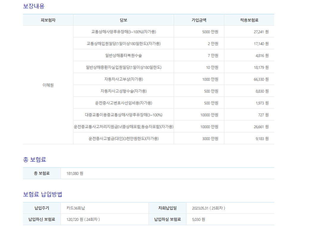 앞으로 2024년 만기월. 까지 매월보험료 납부하시면 운전자보험은 끝납니다