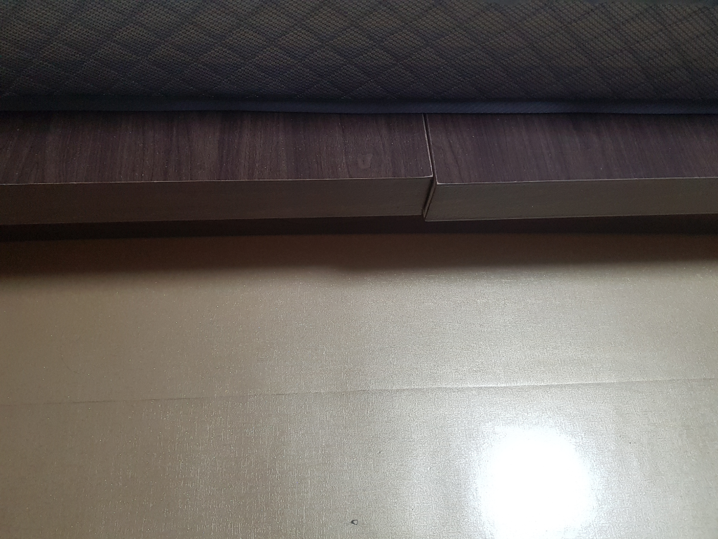 침대 매트리스 밑에 얇은 이불을 넣어서 받침대 밑으로 늘어뜨리면 받침대가 가려져서 부딪혀서 다치는 일이 없을 거예요.