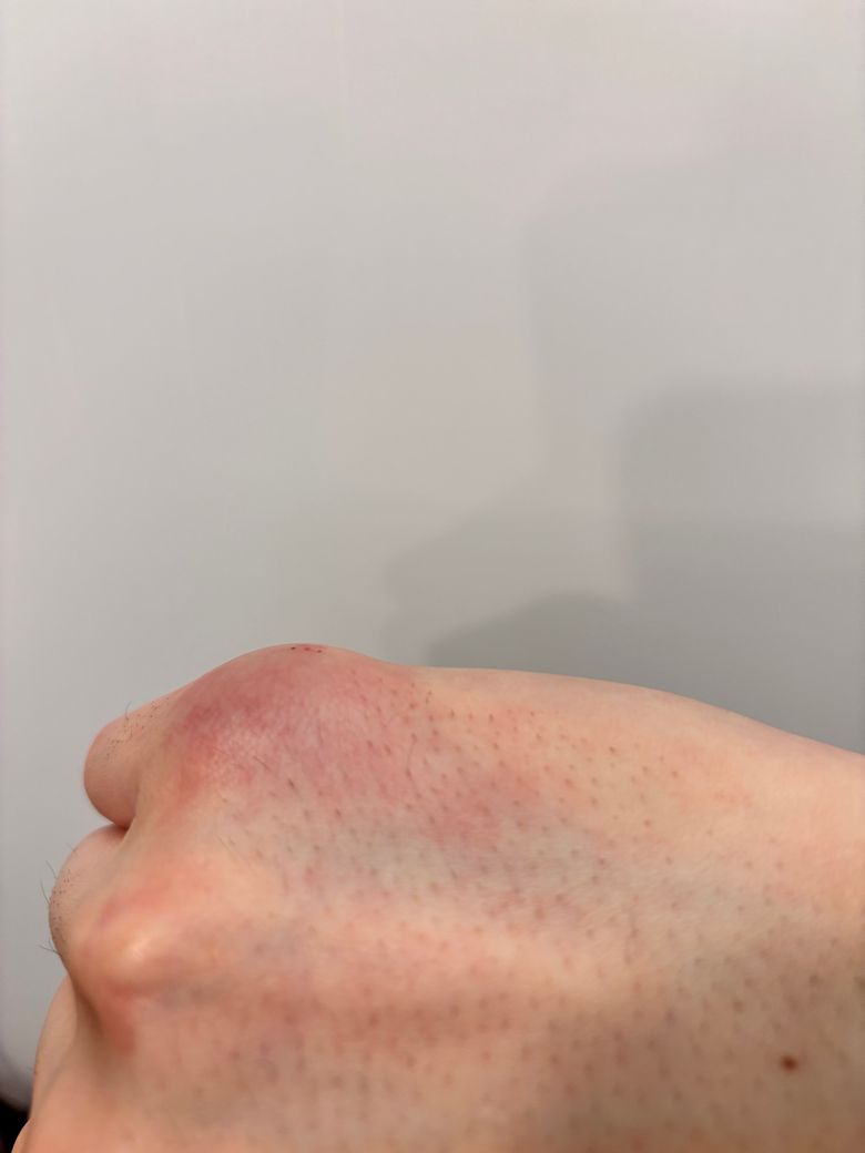 여전히 발적이 있고 약간 부기가 있어보입니다. 금요일에 부딫혔는데 지금도 저정도면 x ray 촬영을 해보시고 미세골절이 있는지라도 한 번 확인해보시는게 안전하겠습니다. 감사합니다.