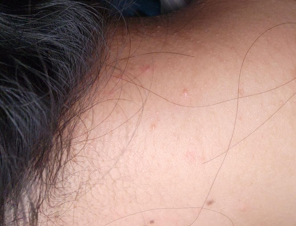 또 다른 가능성은 땀이나 피지가 일시적으로 모공을 막으면서 생기는 일종의 땀띠 또는 모공각화 형태입니다. 최근 날씨 변화, 땀 증가, 머리카락이나 옷깃 마찰 등만으로도 생길 수 있습니다.