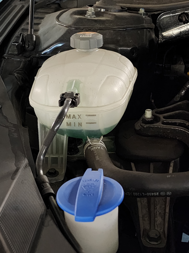 MIN이라고 표시되어 있는 곳까지는 부동액을 보충해주는게 좋아여. 안전을 위해 보충을 하고 출발하세요.^^