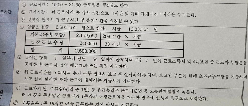 근로 계약서 기제된 급여에서 제가 생각하기에는 일하는 시간에 비해 월급이 좀 부족하다고 느껴서서 이 글을 적게 되었습니다 급여계산이 맞는지 이대로 받으면 실수령액은 얼마나 되는지 궁금합니다
