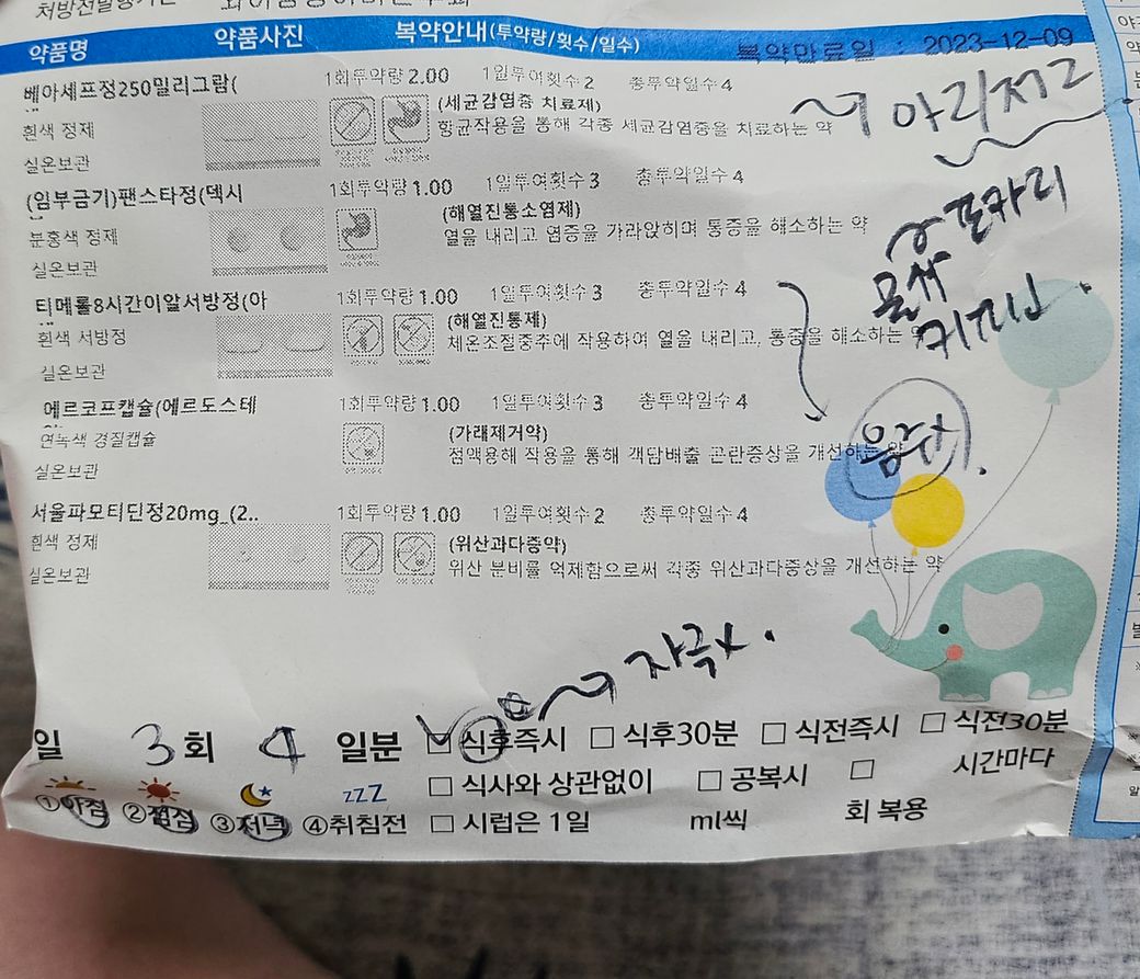 처방전이 아니라 약봉투에 적혀 있습니다...