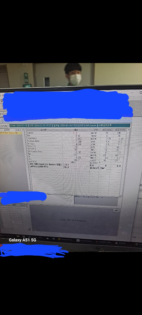 밑의 두 수치는 매독 여부를 확인하는 검사와, 신장 기능을 확인하는 검사입니다. 둘 다 문제가 있어 보이지 않으며, 정밀은 정밀 검사를 받으라는 듯이 아니라 정밀한 수치라는 뜻입니다.
