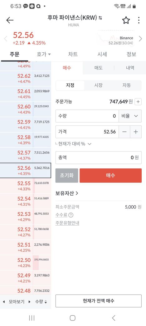 52.56일때 52.55로 더 낮은 금액으로 호가를 하는 것은 메이커가 아닙니다. 테이커 주문이며 52.56일때 52.56에 매수 주문을 넣어야 유동성을 공급하면서 메이커 주문이 됩니다.