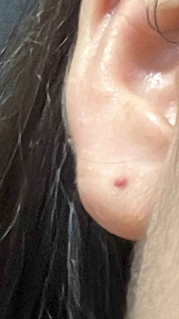 피부과 가서 2주전에 마지막으로 염증 주사 맞고는 갈아앉고 살짝 붉은기만 있는상태였는데 제가 모르는 사이에 어디 다였는지 다시 빨갛게 좀 올라왔아요 그래서
