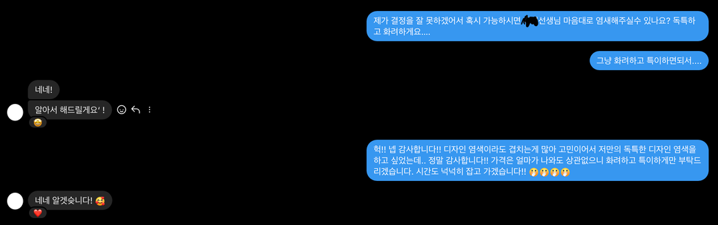 제가 디자인염색 전문 헤어선생님께 캡쳐한것처럼 물어봤는데 선생님께서 괜찮으신거겠죠...??