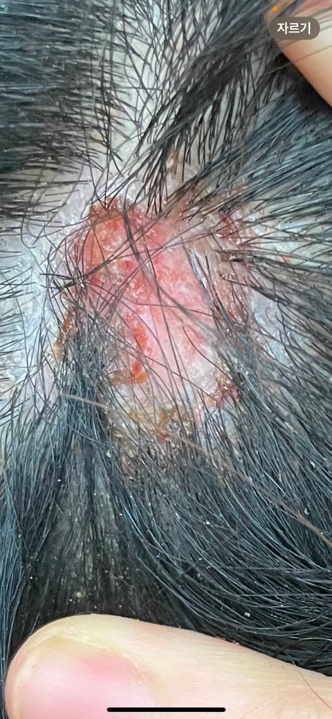 두피 상태가 상당히 심각해 보이므로 피부과를 가는 것이 좋습니다. 특히 상처가 지속적으로 피가 묻어나고 가려움이 계속된다면 염증이나 감염이 발생할 가능성이 있으므로 병원 치료를 받는 것이 안전합니다.
