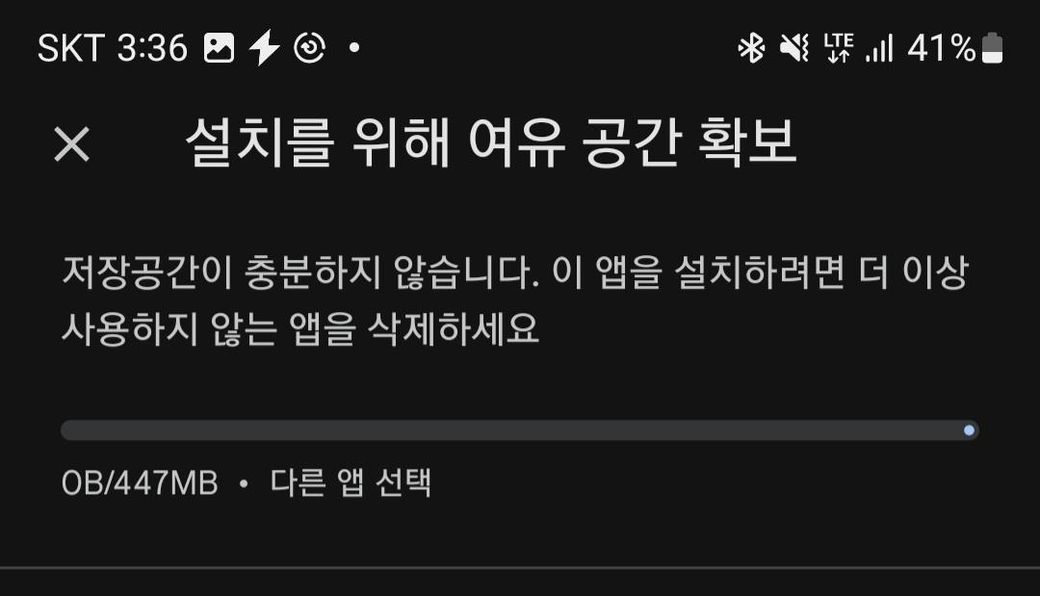 어플의 크기를 받을만큼 용량이 있는데