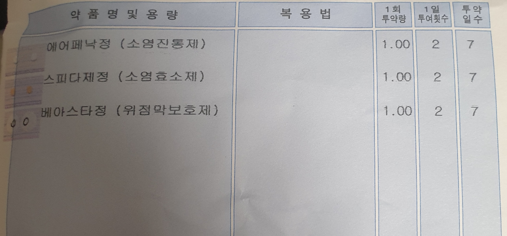 에어페낙정(소염진통제), 스피다제정(소염효소제), 베아스타정(위점막보호제)와 미노씬과는 서로 성분이 중복되거나 상호작용이 있지 않기에 함께 복용해도 가능합니다.