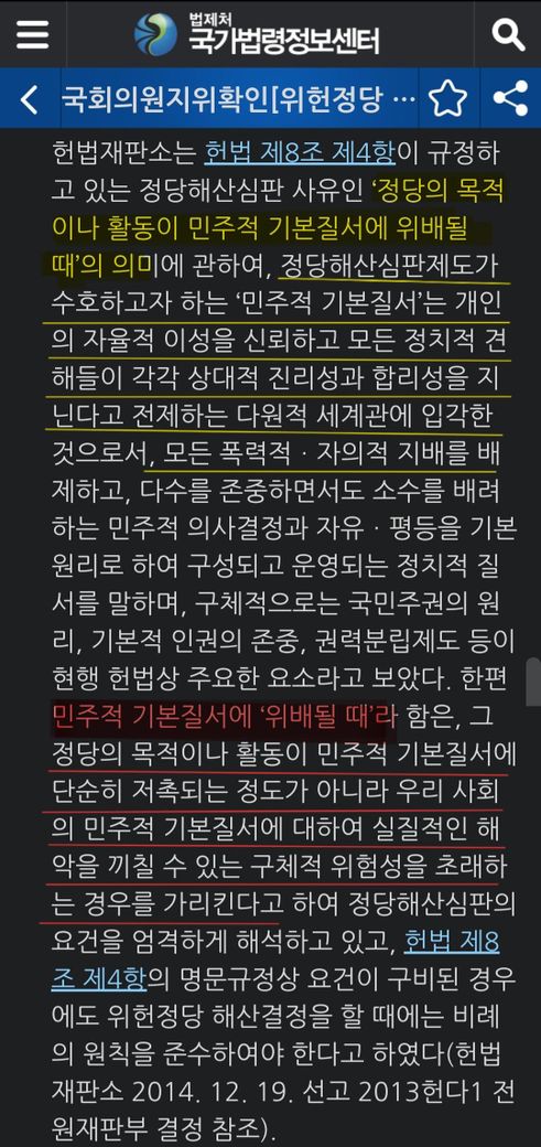 민주적 기본 질서의 위배된 경우에 해당될 여지가 없을까요??