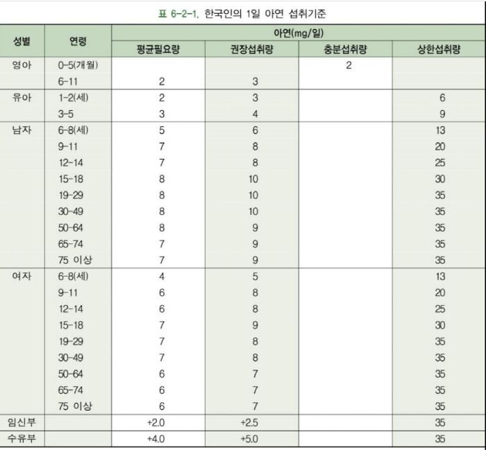 나이 별로, 아연의 권장섭취량에 맞추어 복용하길 바랍니다.