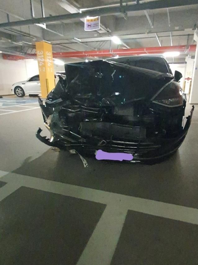 박고 가해차량은 아파트 지하 주차장으로 도주한 상태였습니다. (입주민들신고로의해 경찰은뒤따라간상황입니다.)