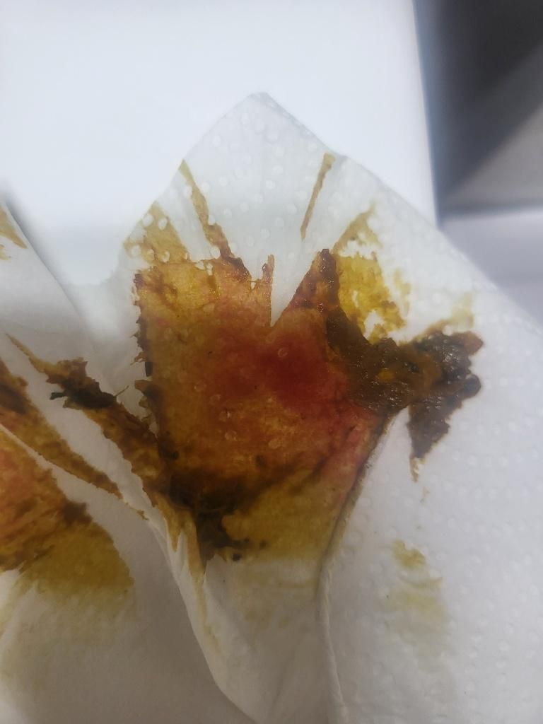 중요한 감별은 다음과 같습니다. 치핵 출혈은 보통 선홍색, 배변 직후 또는 닦을 때 나타나며 통증은 경미하거나 없습니다. 치열은 배변 시 찢어지는 통증이 뚜렷하고 소량 출혈이 흔합니다. 상부 위장관이나 대장 출혈은 보통 변과 섞이거나 색이 어둡고, 현재 양상과는 다소 다릅니다.