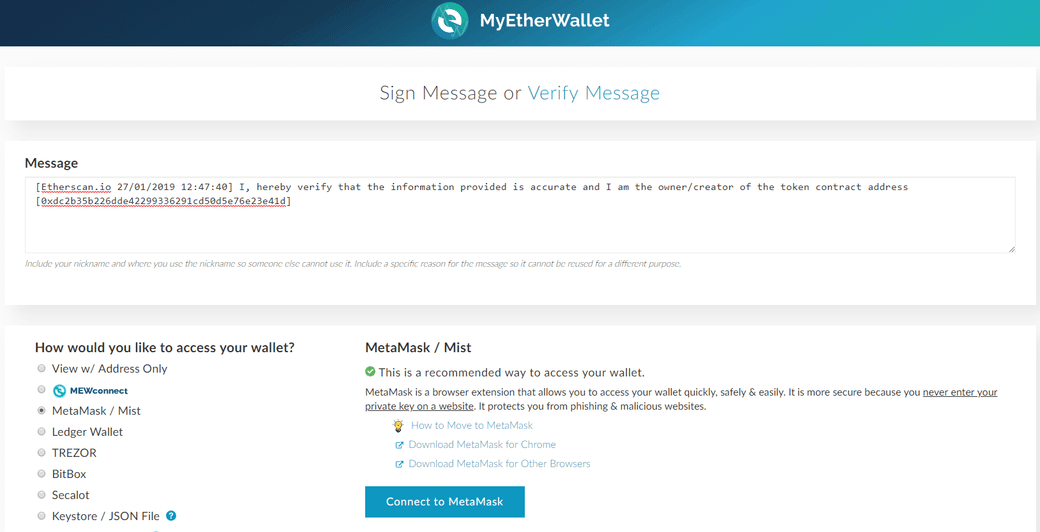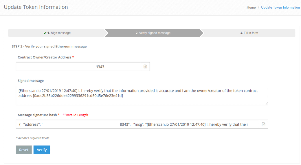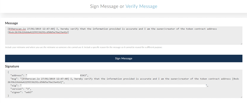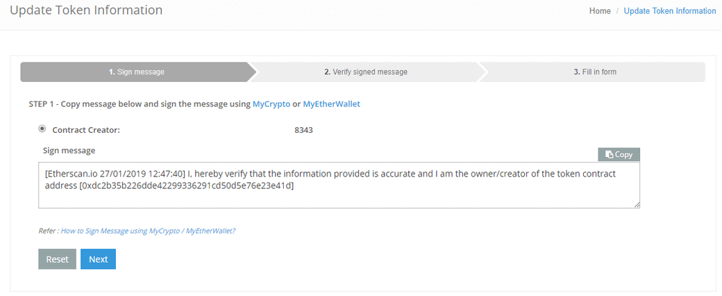 이더스캔에서 컨트렉트의 정보를 업데이트 할 때 사용되는 Message signature hash 는 해당하는 메세지를