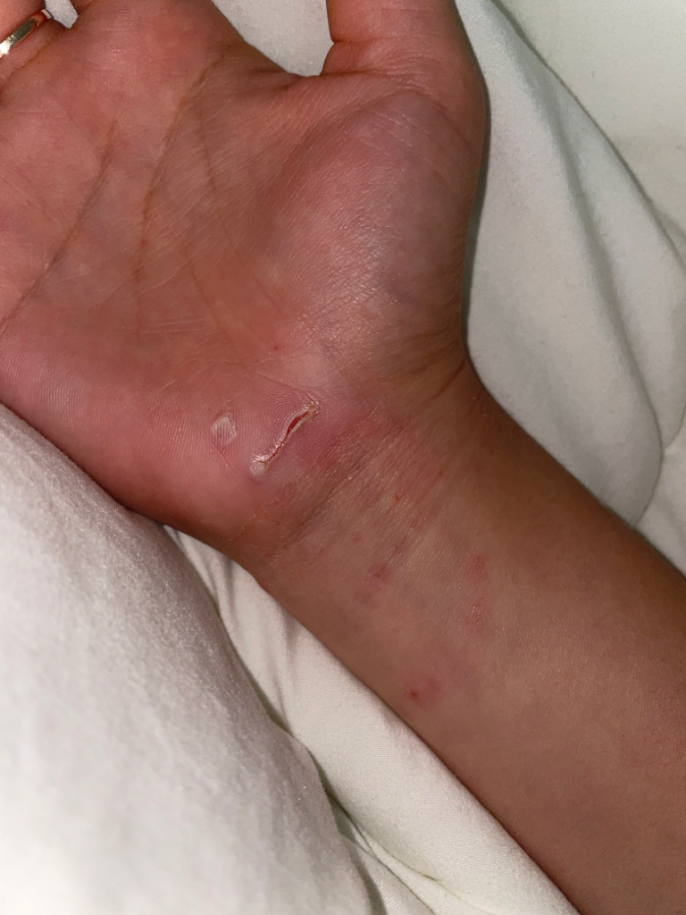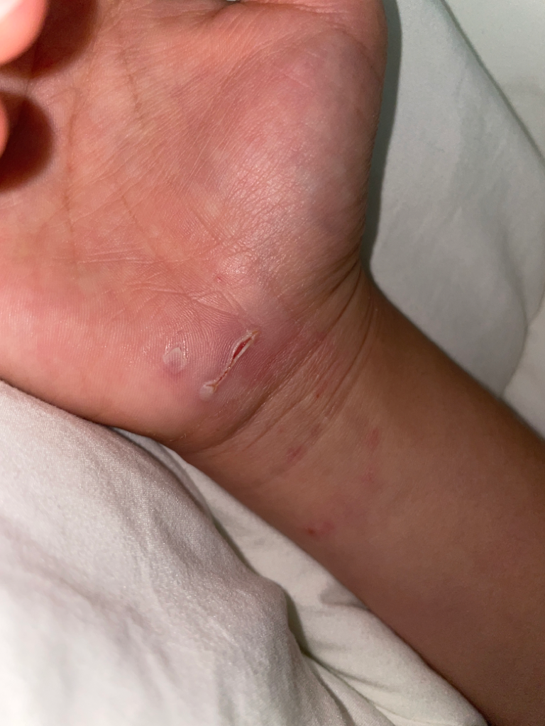 손바닥에 난 상처는 깊어 보입니다. 사진으로는 깊이가 가늠이 되지 않습니다.