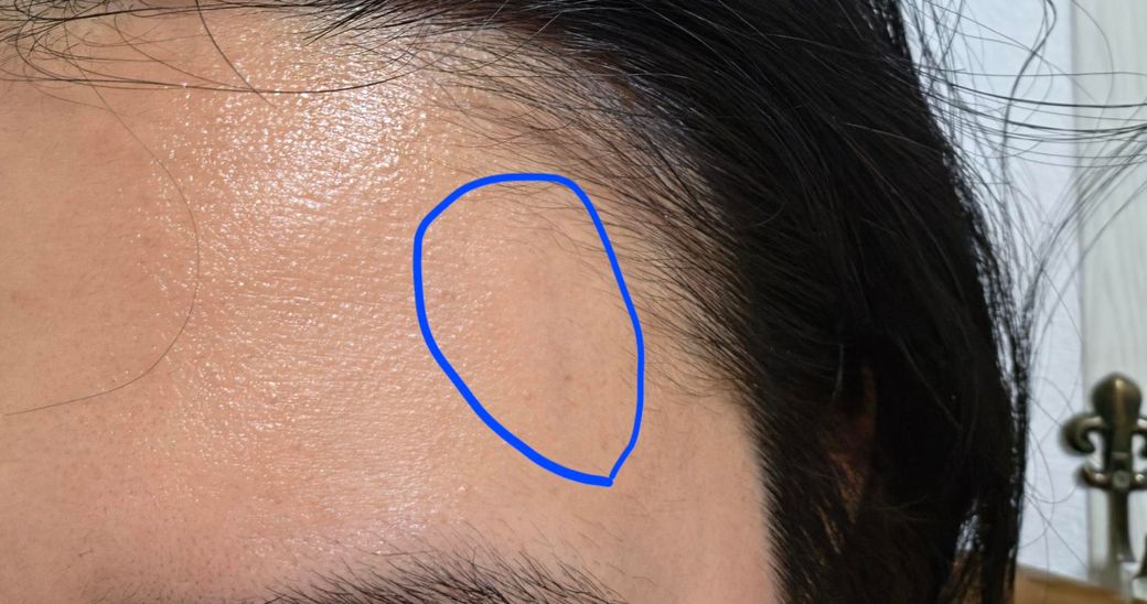 사진과 설명을 종합하면 이마의 표재 정맥이 일시적으로 더 도드라져 보이는 상황으로 판단됩니다. 피부 위로 길게 보이지만 만져지는 덩어리나 통증이 없고, 면도해도 변화가 없다면 혈관 구조로 보는 것이 타당합니다.